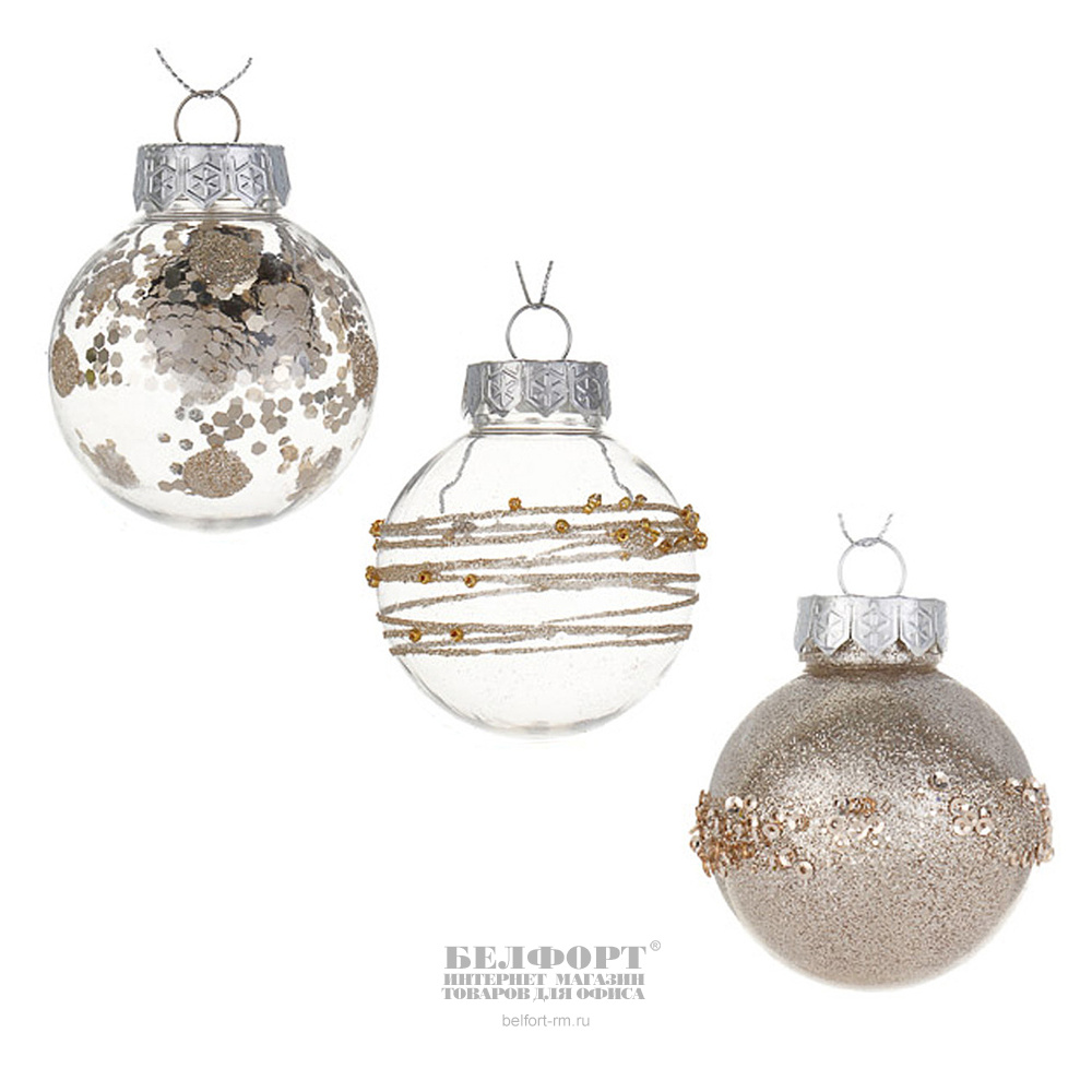 Набор шаров 6 см, 6шт, Сноу Бум, шампань, пластик