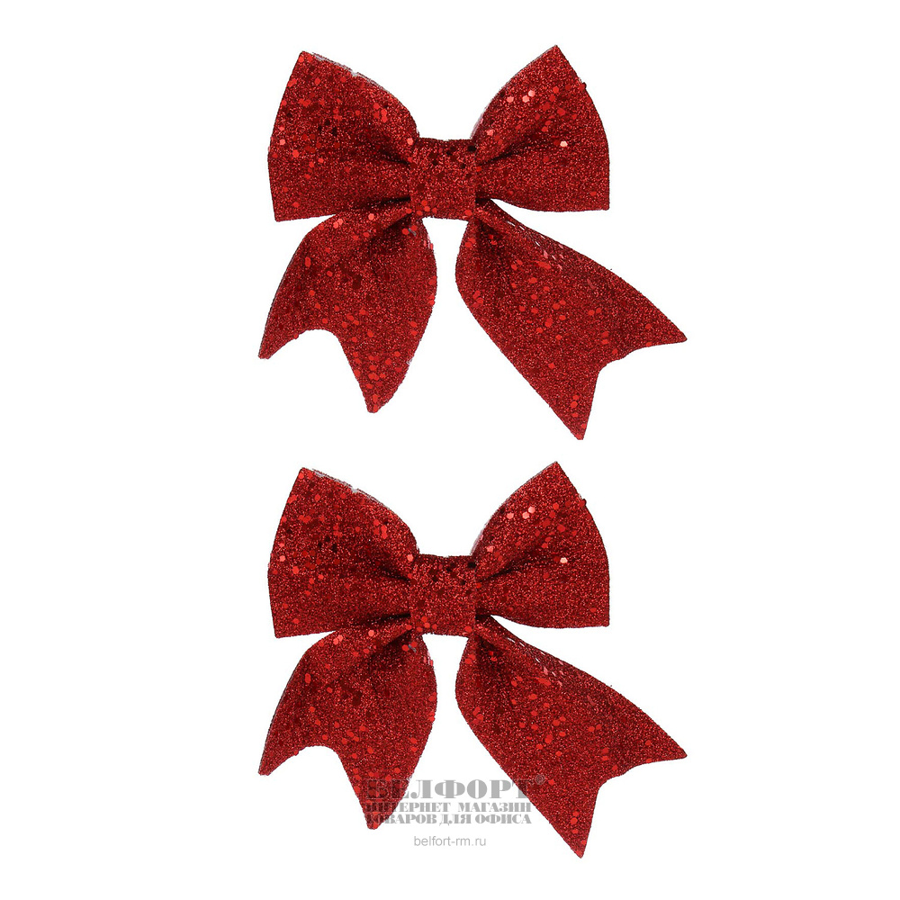 Набор бантов 2шт, Сноу Бум, полиэстер, красный, с блестками, 13см*11,5см