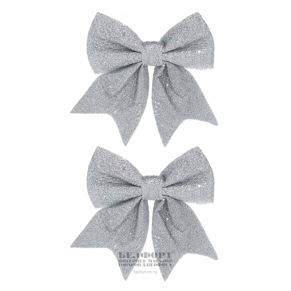 Набор бантов 2шт, Сноу Бум, полиэстер, серебристый, с блестками, 13см*11,5см