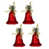 Набор украшений 4шт, Сноу Бум, "Колокольчики", красный, пластик, 6см