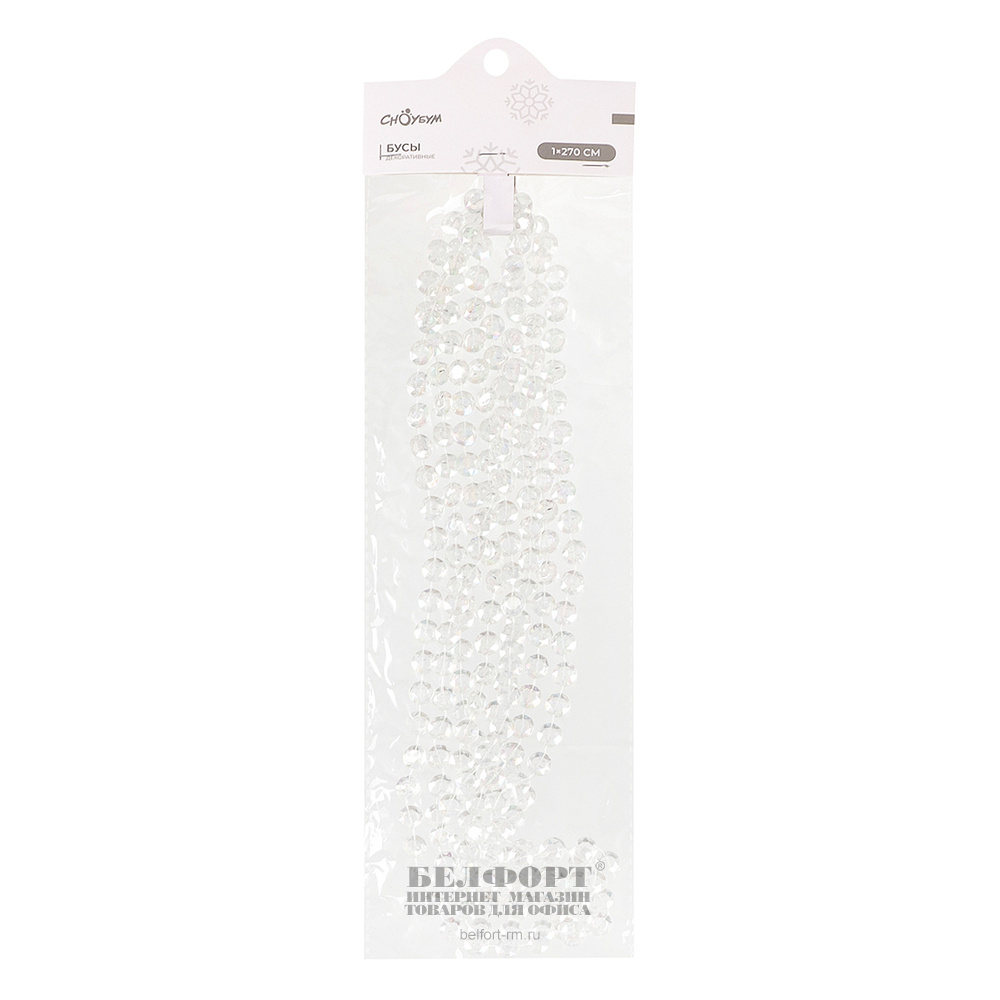 Бусы на елку пластик, прозрачные, длина 2,7м, диаметр 8 мм