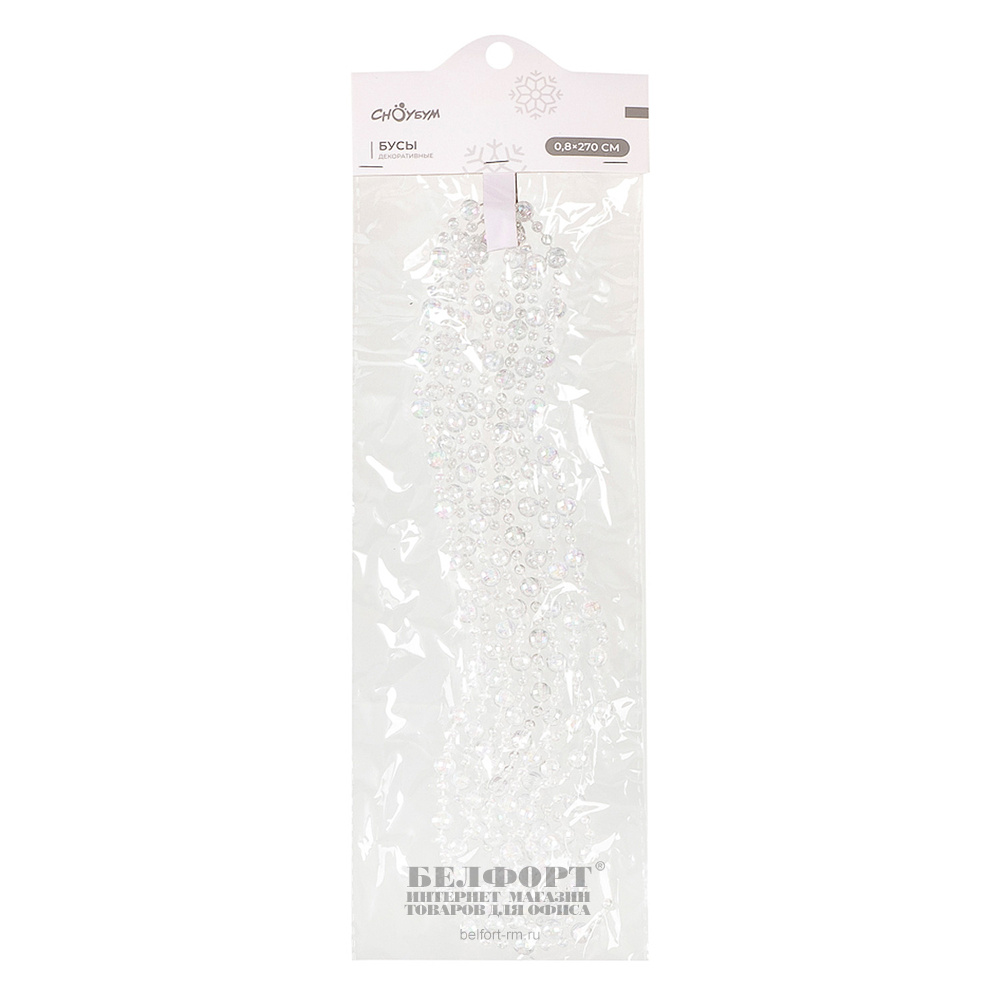 Бусы на елку пластик, прозрачные, длина 2,7м, диаметр 8 мм