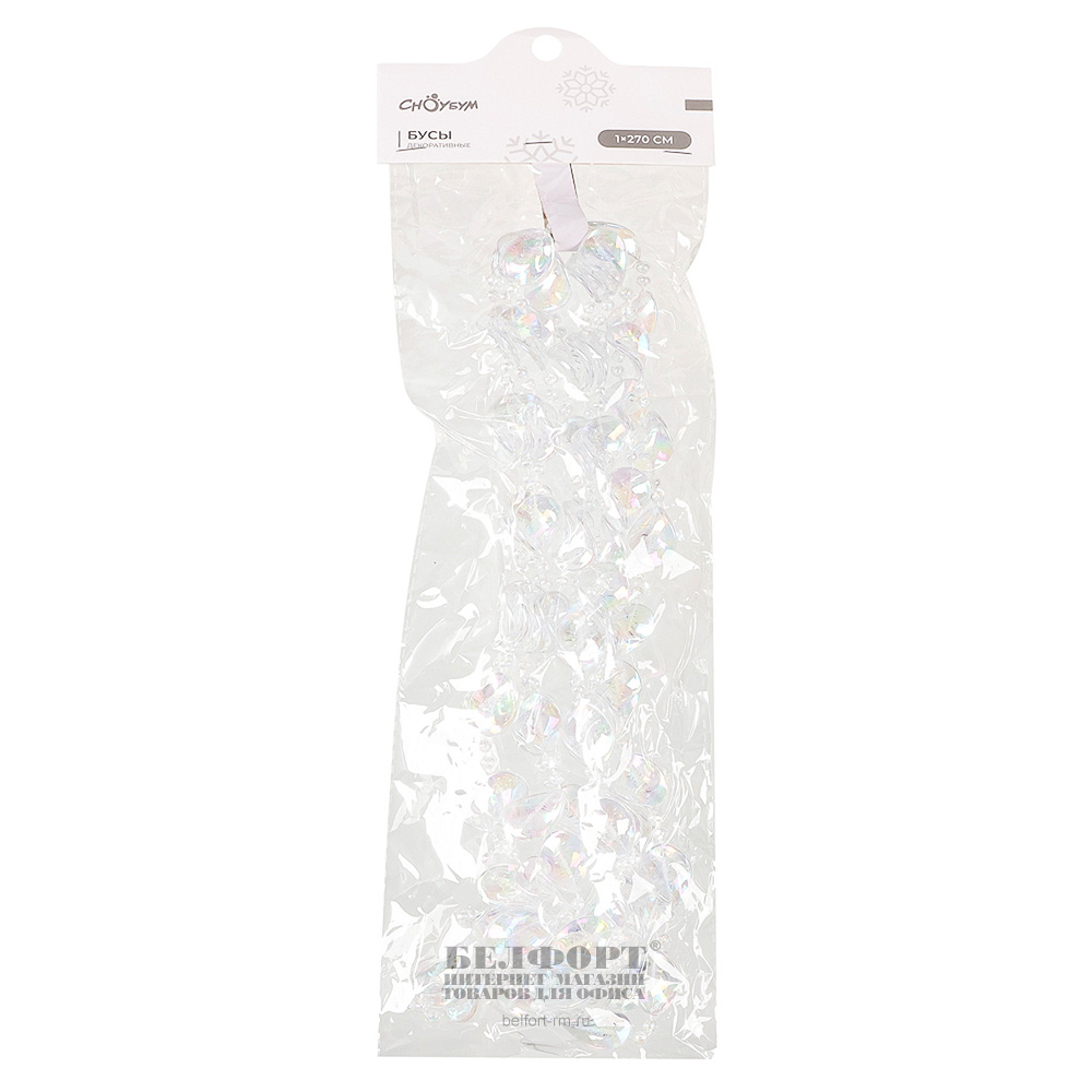 Бусы на елку пластик, прозрачные, длина 2,7м, диаметр 10 мм, круглые
