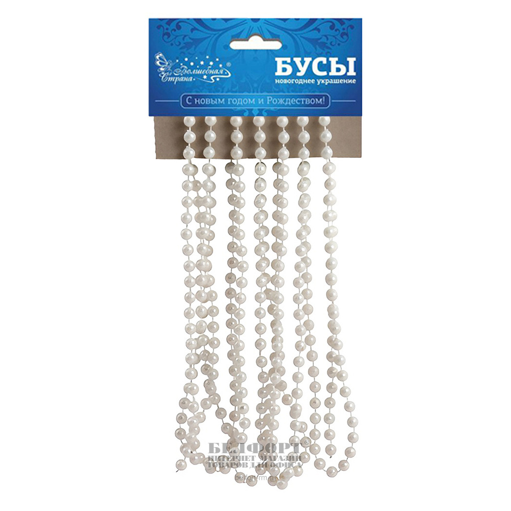 Бусы на елку "Жемчужина", пластик, белый перламутр, длина 2,7м, диаметр 6 мм