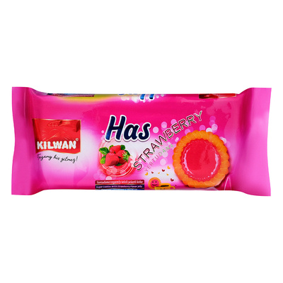 Добавить к сравнению257753Есть в наличии 5 уп.Печенье сахарное "HAS", с желе со вкусом клубники, 64г