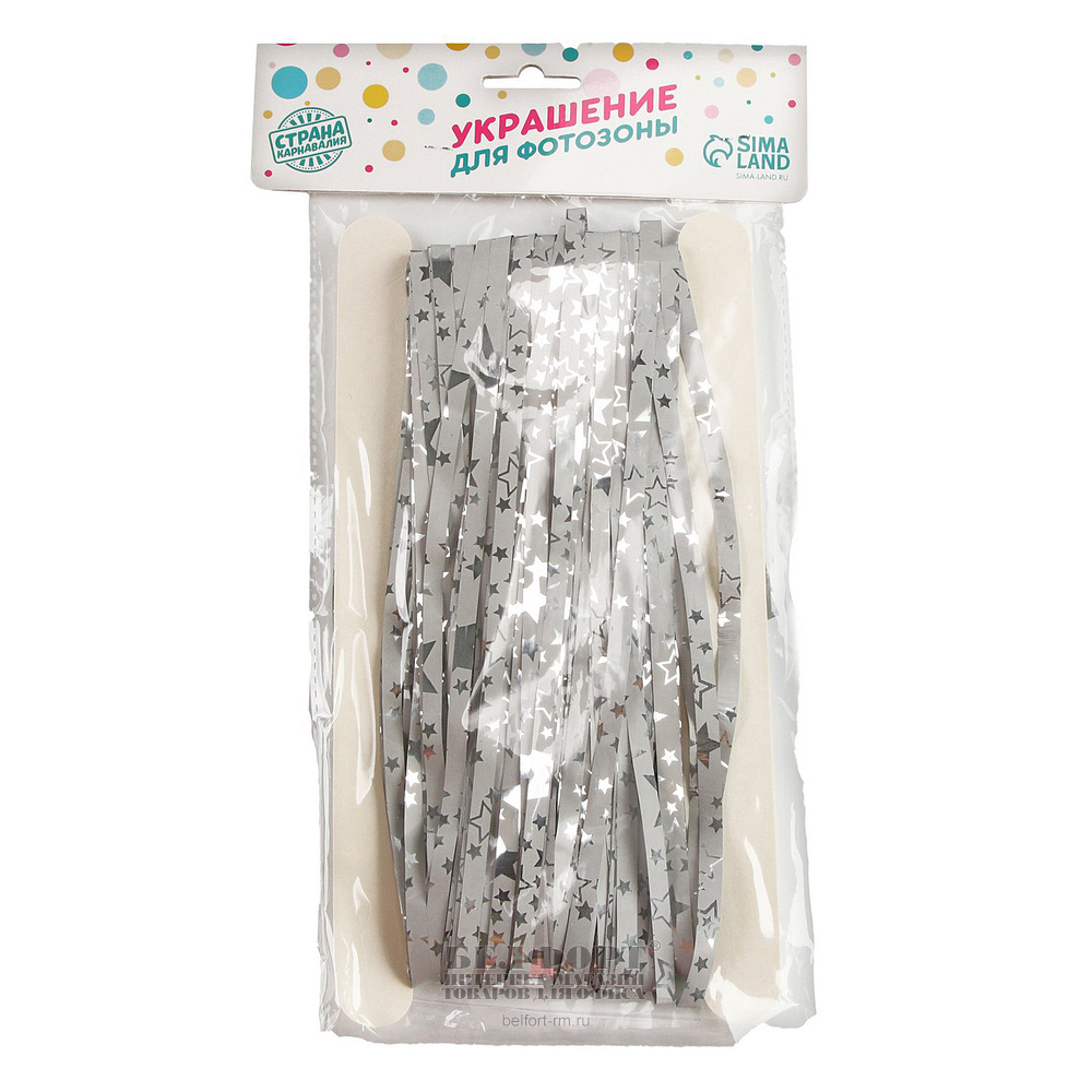 Занавеска из дождика Страна Карнавалия, 2м*1м, серебристая, фольга, со звездами
