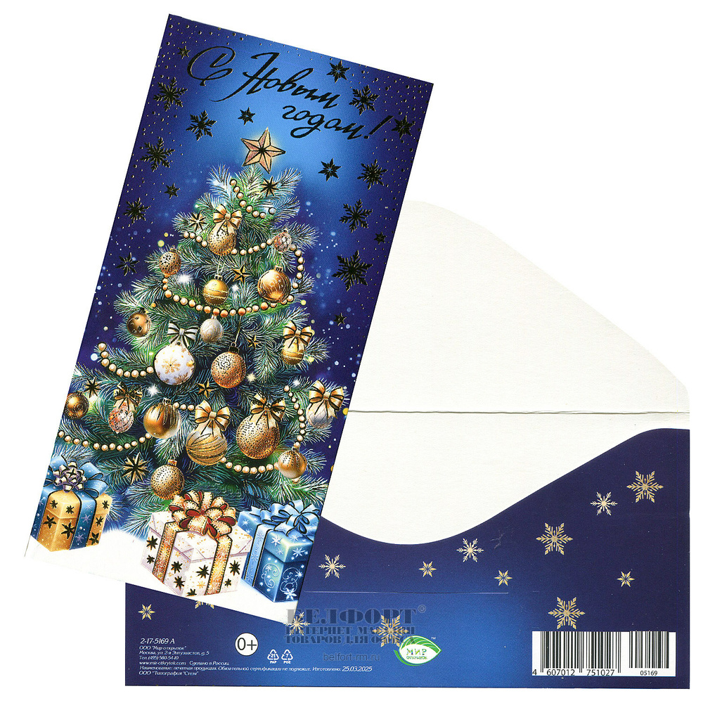 Конверт для денег "С Новым годом!", 16,5см*8,5см, фольга, елка с подарками