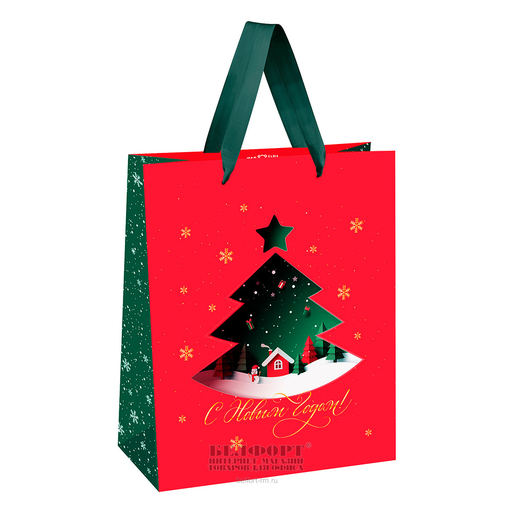Пакет новогодний матовый, картон ламинированный, 26см*12см*32см, MESHU, "Scandi", вертикальный