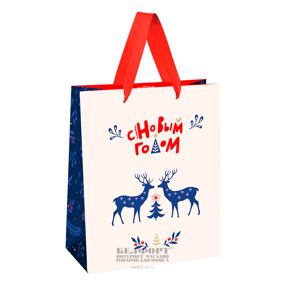 Пакет новогодний матовый, картон ламинированный, 26см*12см*32см, MESHU, "Scandi", вертикальный