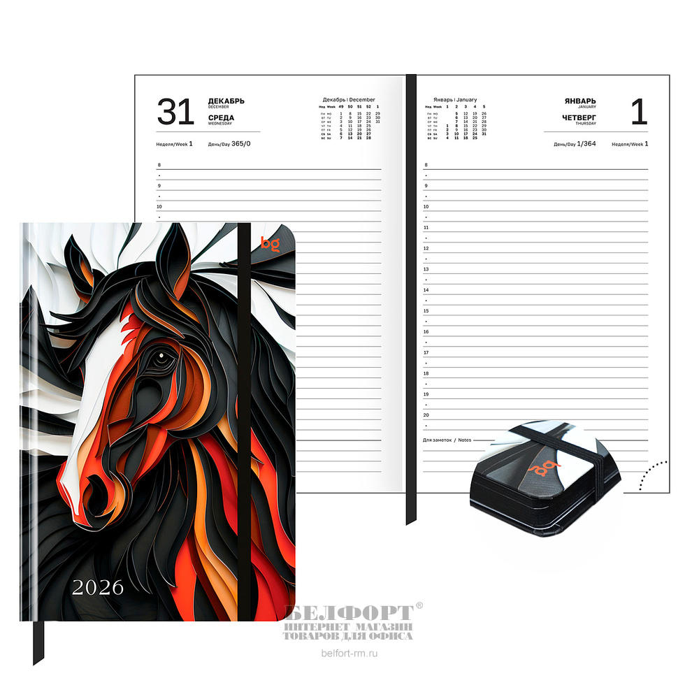 Ежедневник 2026г. А5, картон ламинированный, BG, "Символ Года", 176л, 205мм*145мм, матовый, в твердом переплете, цветной, белый блок, ляссе