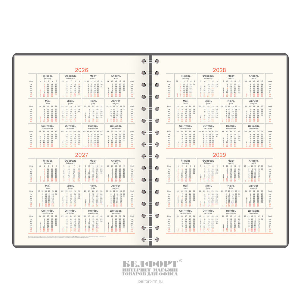 Ежедневник 2026г. А6, кожзам, BG, "Palm", "Graphite", 176л, 145мм*105мм, в твердом переплете, графитовый, кремовый блок, ляссе, 70г⁄м²
