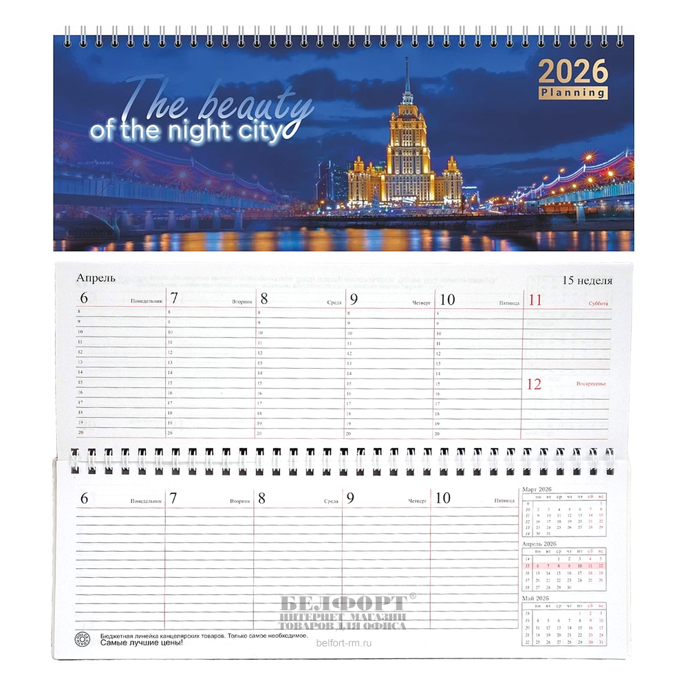 Планинг 2026г. картон ламинированный, Lamark, "Ночные огни", 56л, 295мм*106мм, на спирали(гребне), цветной, белый блок