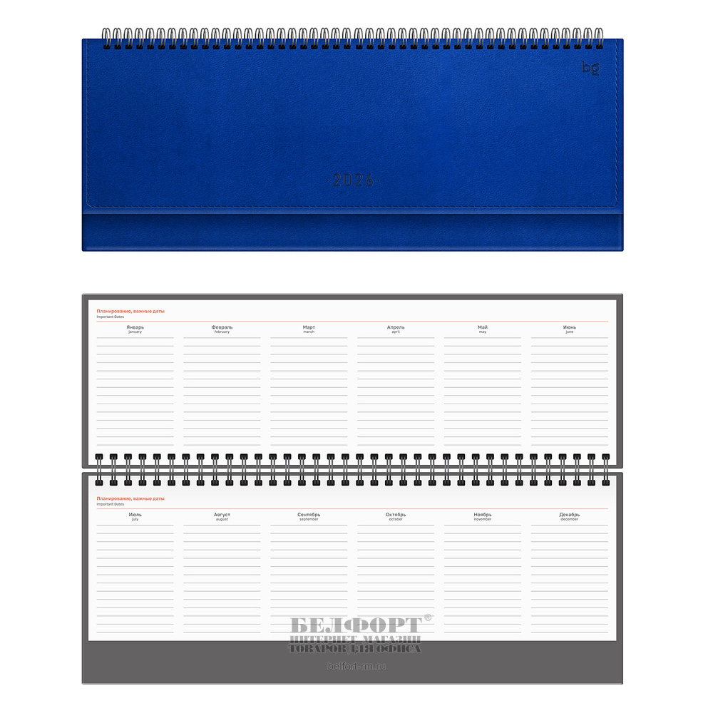 Планинг 2026г. кожзам, BG, "Winner", "Blue", 64л, 330мм*130мм, на спирали(гребне), синий, белый блок