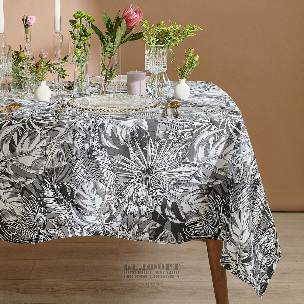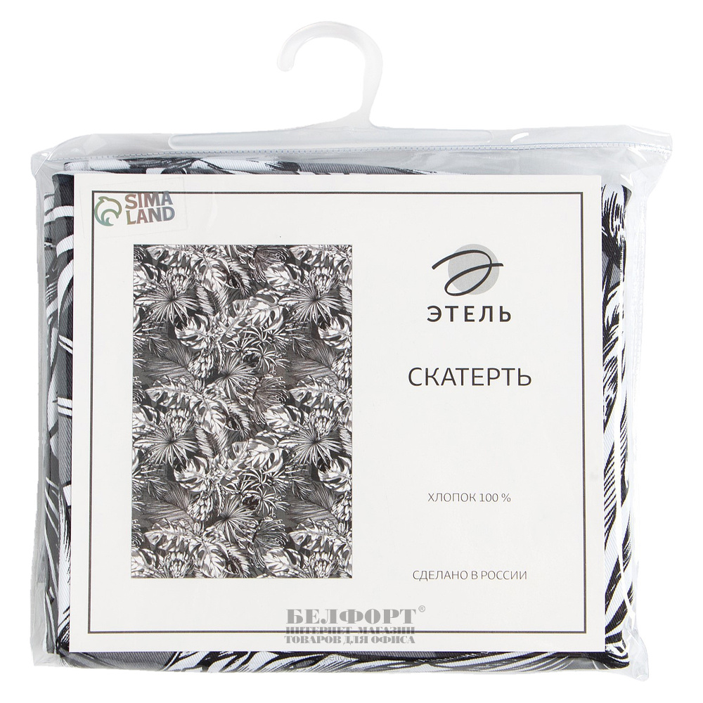 Скатерть Этель, "Palm leaves", "Tropical vibes", саржа, белая, черная, 149см*110см, 190г⁄м²