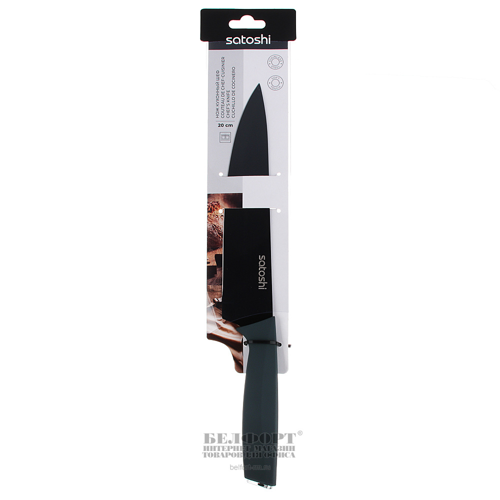 Добавить к сравнению249622Есть в наличии 4 шт.Нож кухонный шеф, нержавеющая сталь, Satoshi, "Меллер", 20см, с антиналипающим покрытием