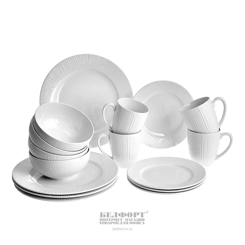 Сервиз столовый 16 предметов, фарфор, Beatrix, "White lily", белый