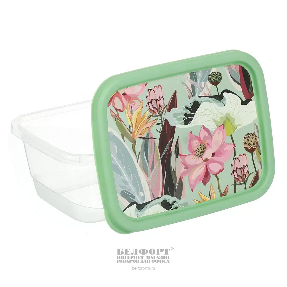 Контейнер для СВЧ 500мл, пластик, с декором, зеленый, прямоугольный