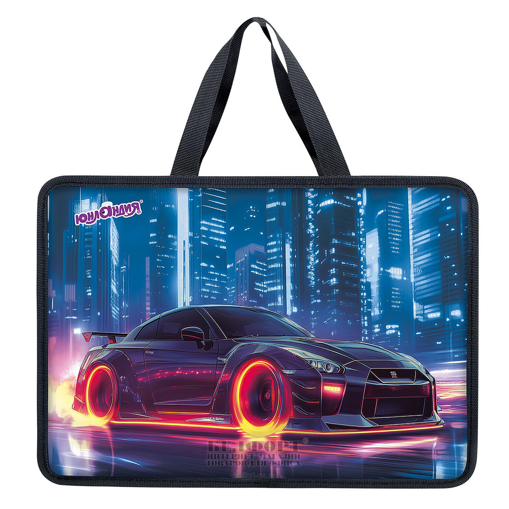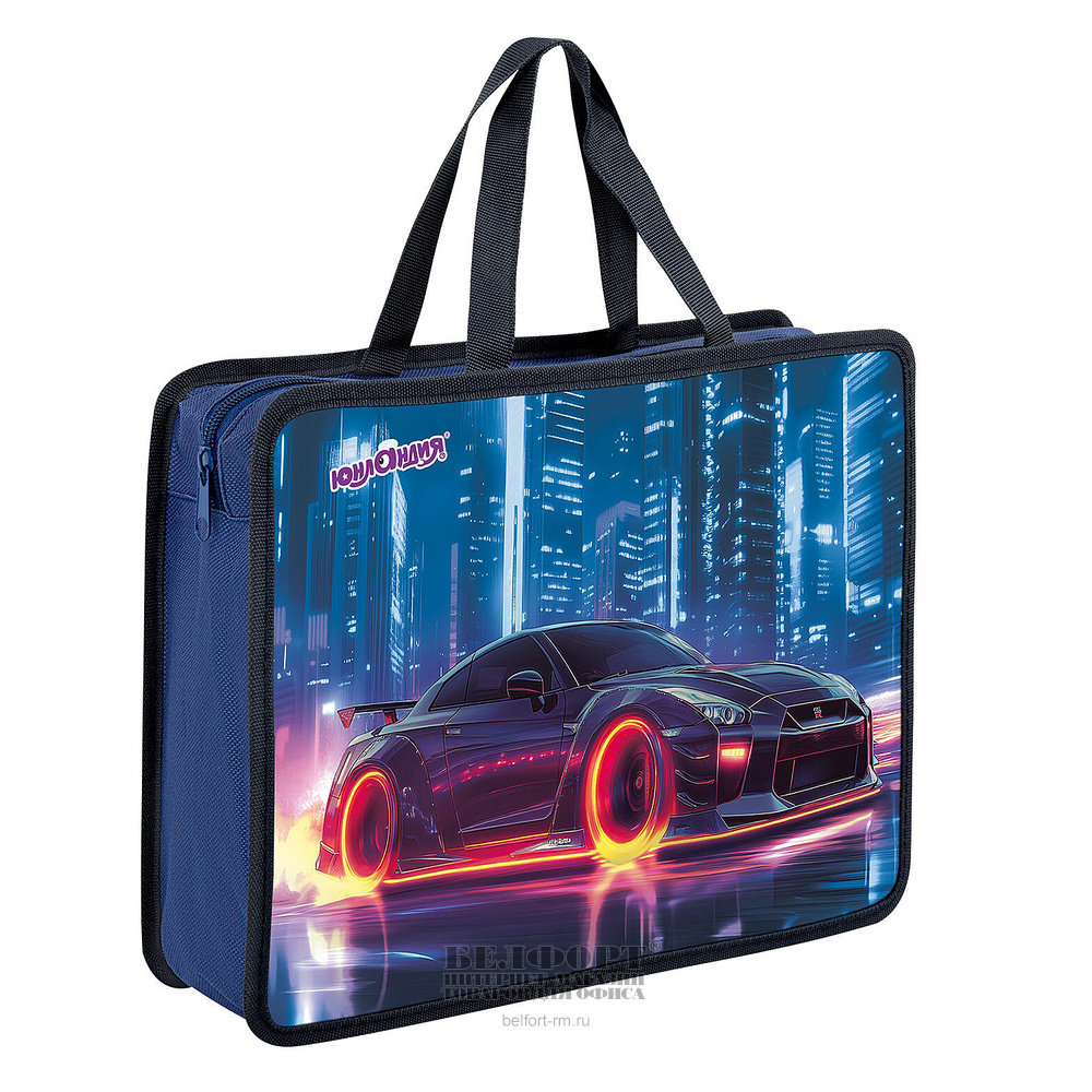 Папка с ручками на молнии, А4, Юнландия, "Fire wheels", 80мм, пластик