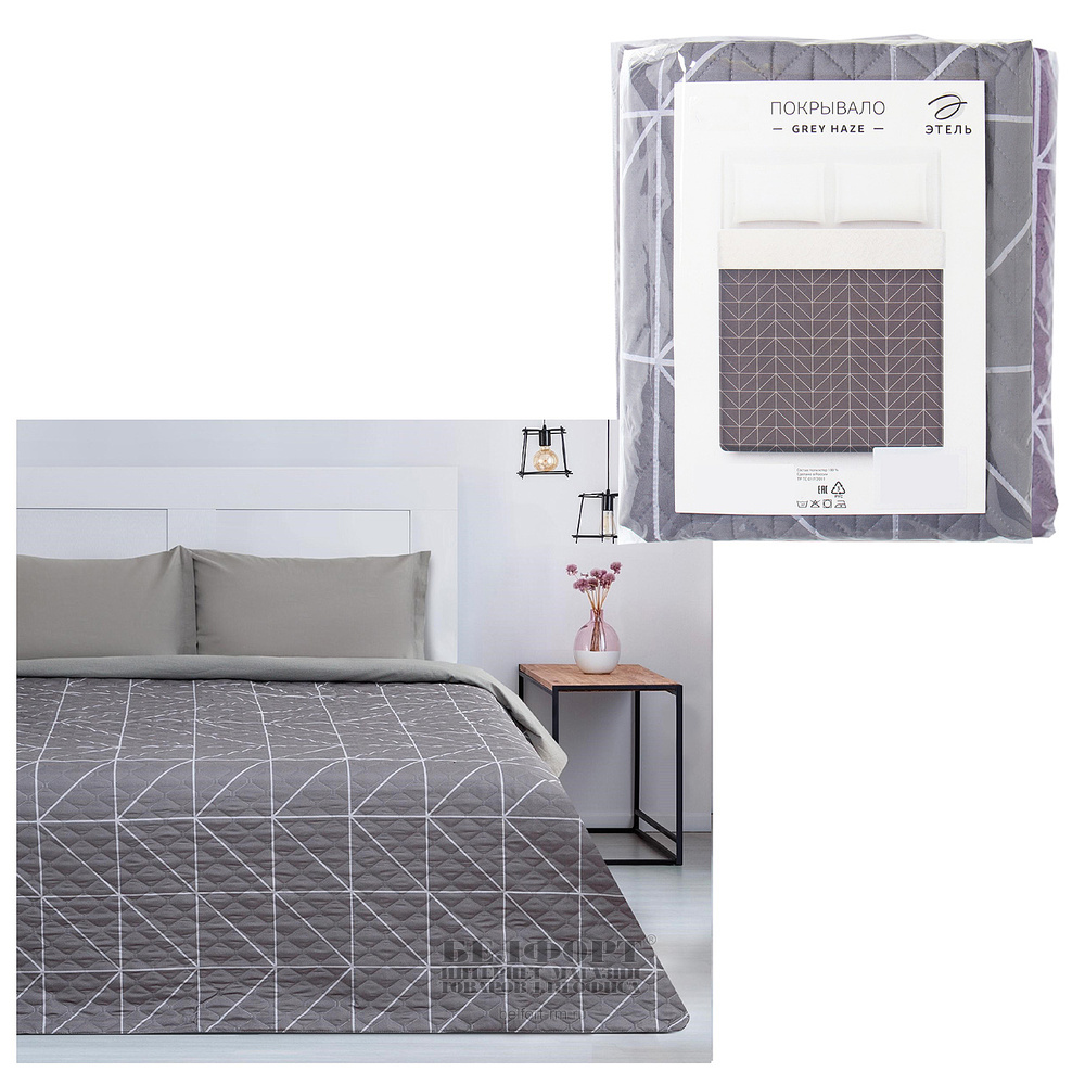 Покрывало двуспальное, Этель, "Серая дымка (Grey haze)", 220см*180см, серое, микрофибра, 80г⁄м²