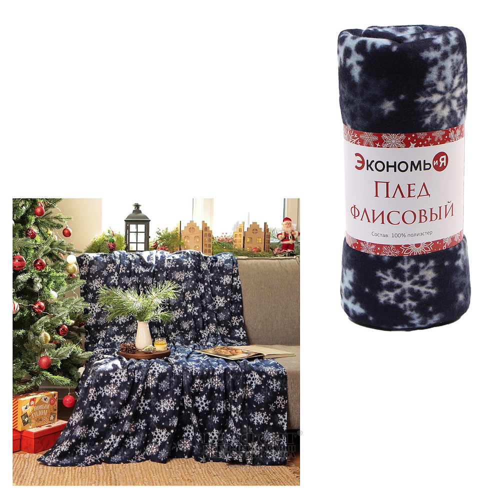 Плед полутораспальный, Экономь и Я, "Снегопад", 150см*130см, синий, полиэстер
