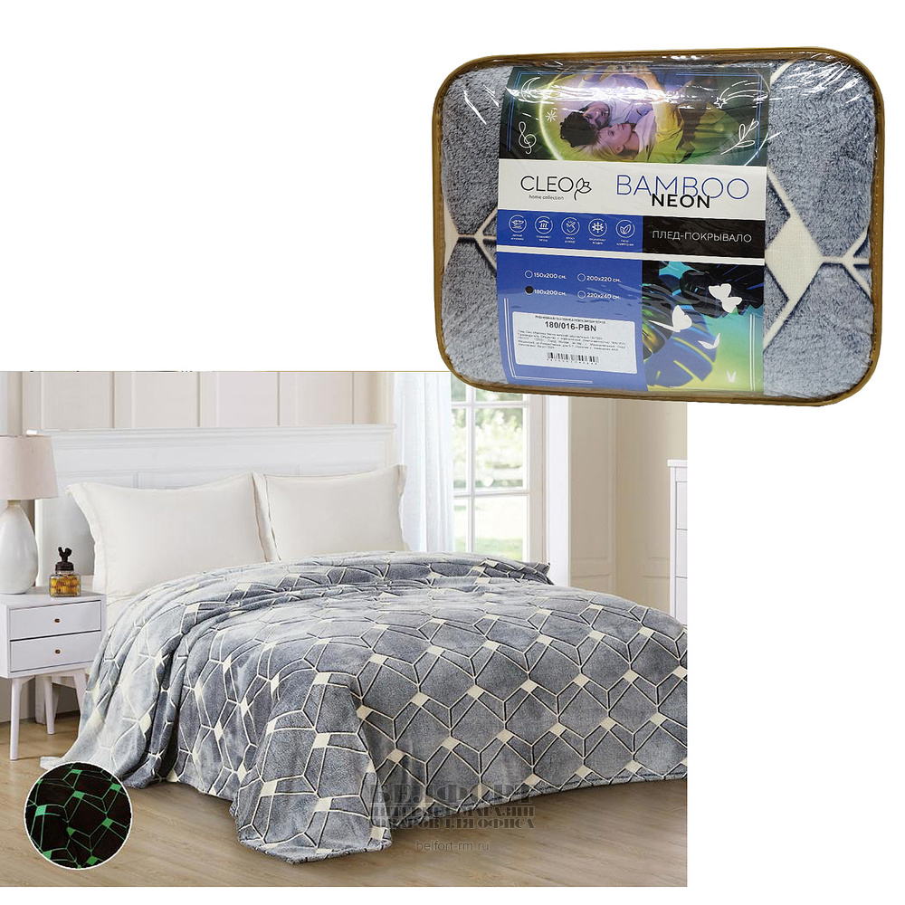 Плед двуспальный, Cleo, "Бамбук-неон", 200см*180см, велсофт