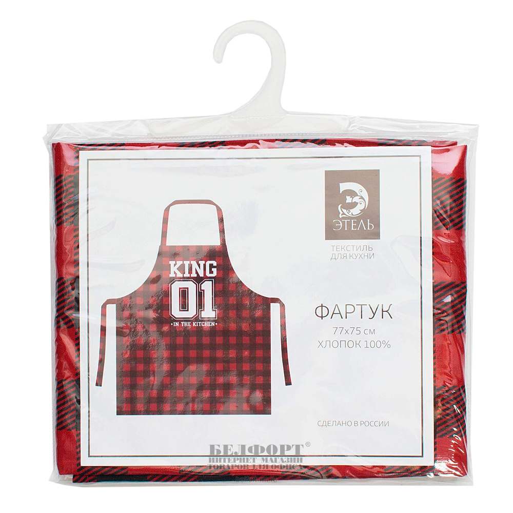 Фартук Этель, "Король кухни", 77см*75см, хлопок, красный, черный