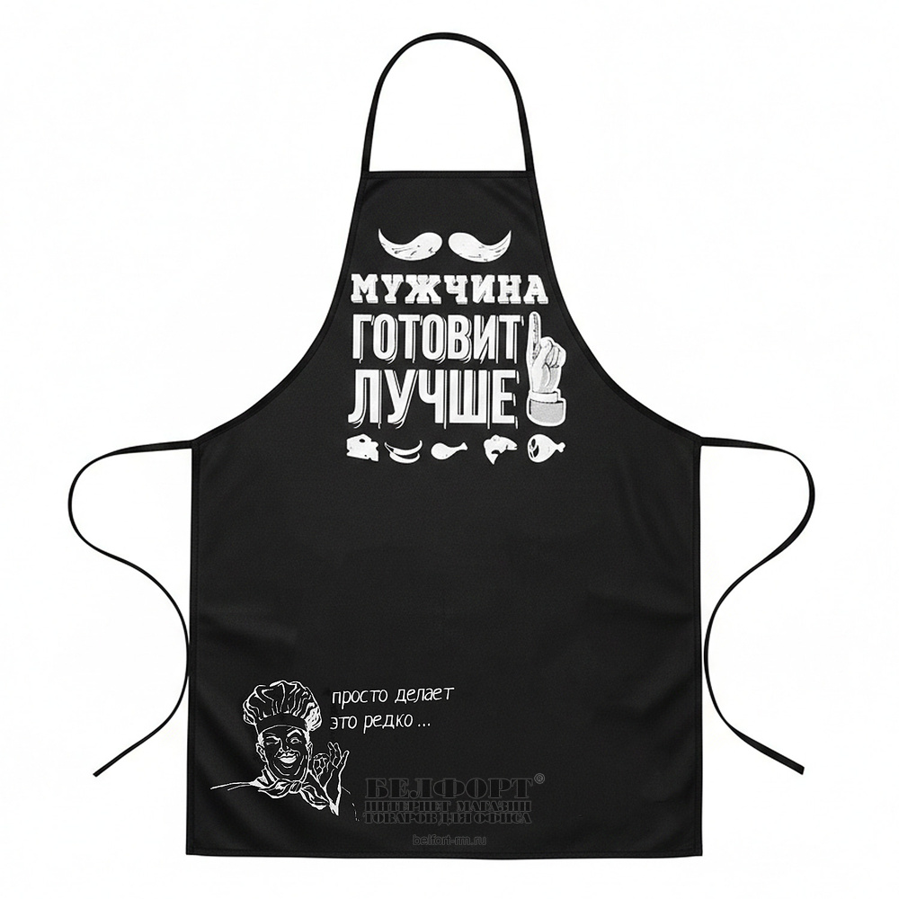Фартук мужской, NAZAMOK, "Мужчина готовит лучше", 70см*50см, полиэстер, черный