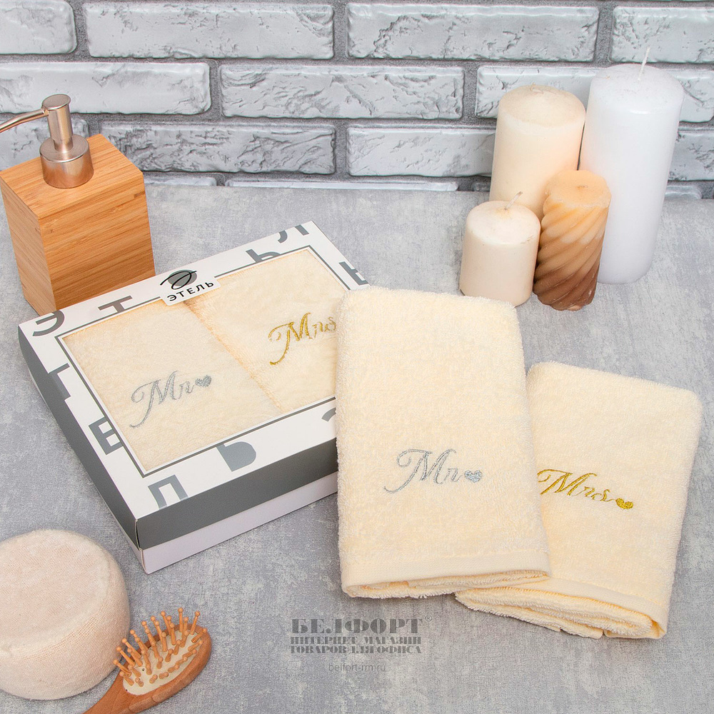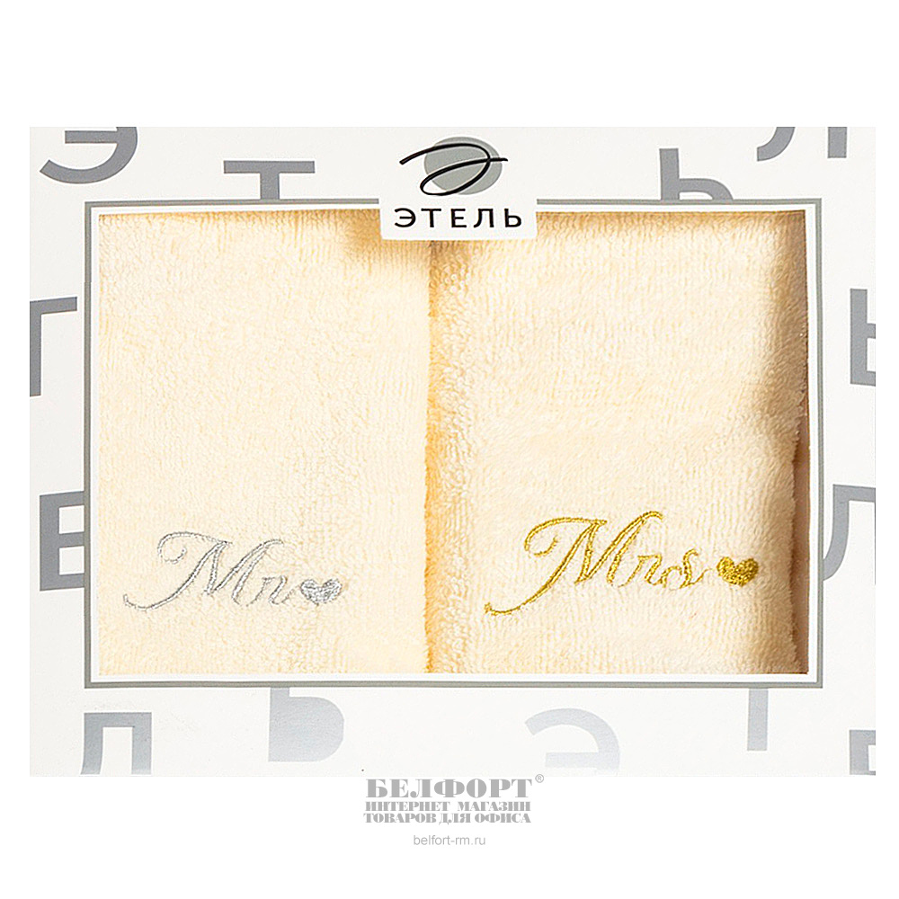 Набор полотенец 2шт, Этель, "Mr&Mrs", бежевый, 50см*35см, хлопок, 350г⁄м²
