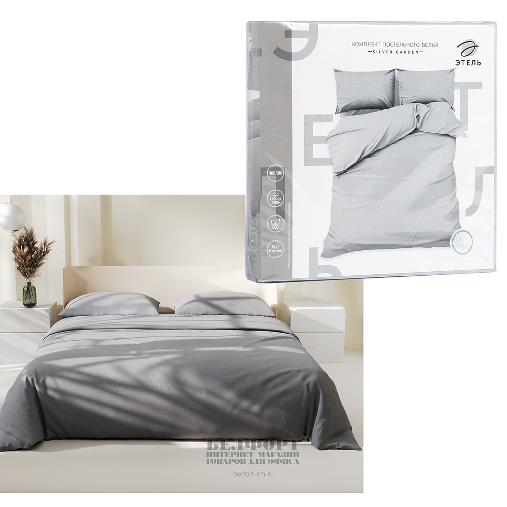 Комплект постельного белья евро, Этель, "Silver garden", "Plain collection", наволочки 50*70 (2шт), пододеяльник 200*215, простынь 220*240, поплин, 125г⁄м²