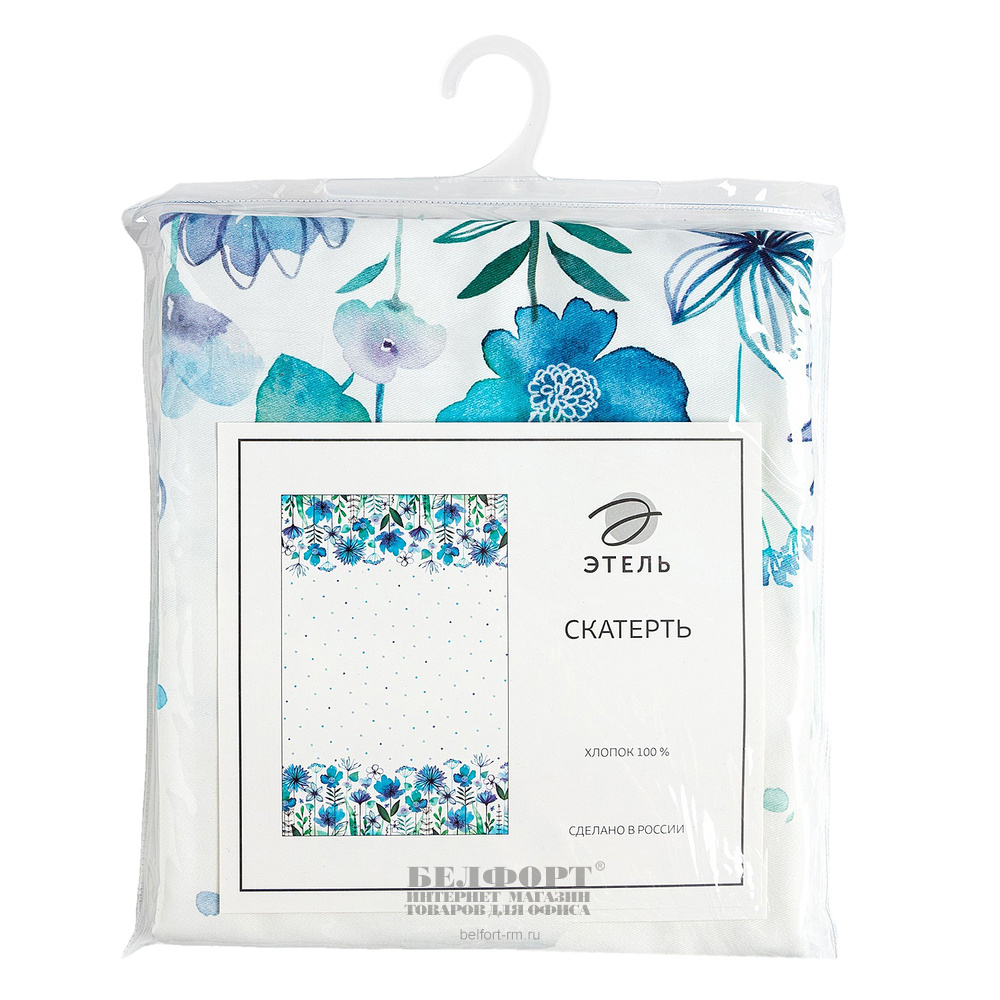 Скатерть Этель, "Незабудки", саржа, белая, голубая, 220см*149см, 190г⁄м²