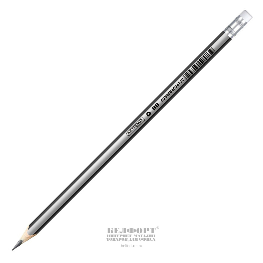 Карандаш чернографитный HB(ТМ), Keyroad, дерево, с ластиком, корпус серебристо-черный, трехгранный