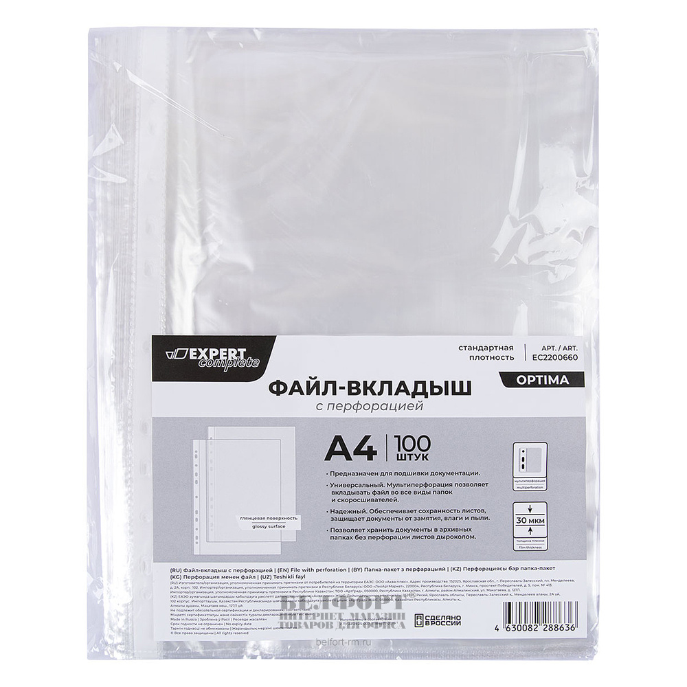 Папка-файл 30мкм, А4, Expert Complete, "Optima", глянцевая, 100шт