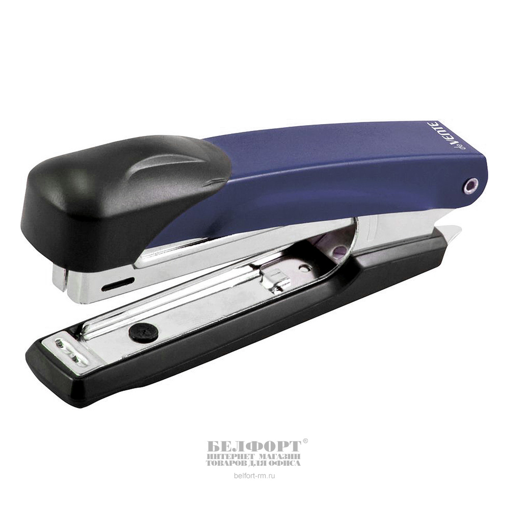 Степлер N10 до 12л, металл, deVENTE, "Liquid Metal", корпус черный, синий, с антистеплером, 60мм