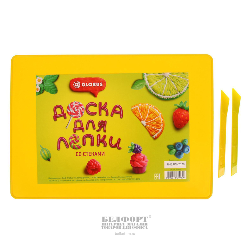 Доска для лепки А4, желтая, пластик, Глобус, 280мм*200мм, 2 стека