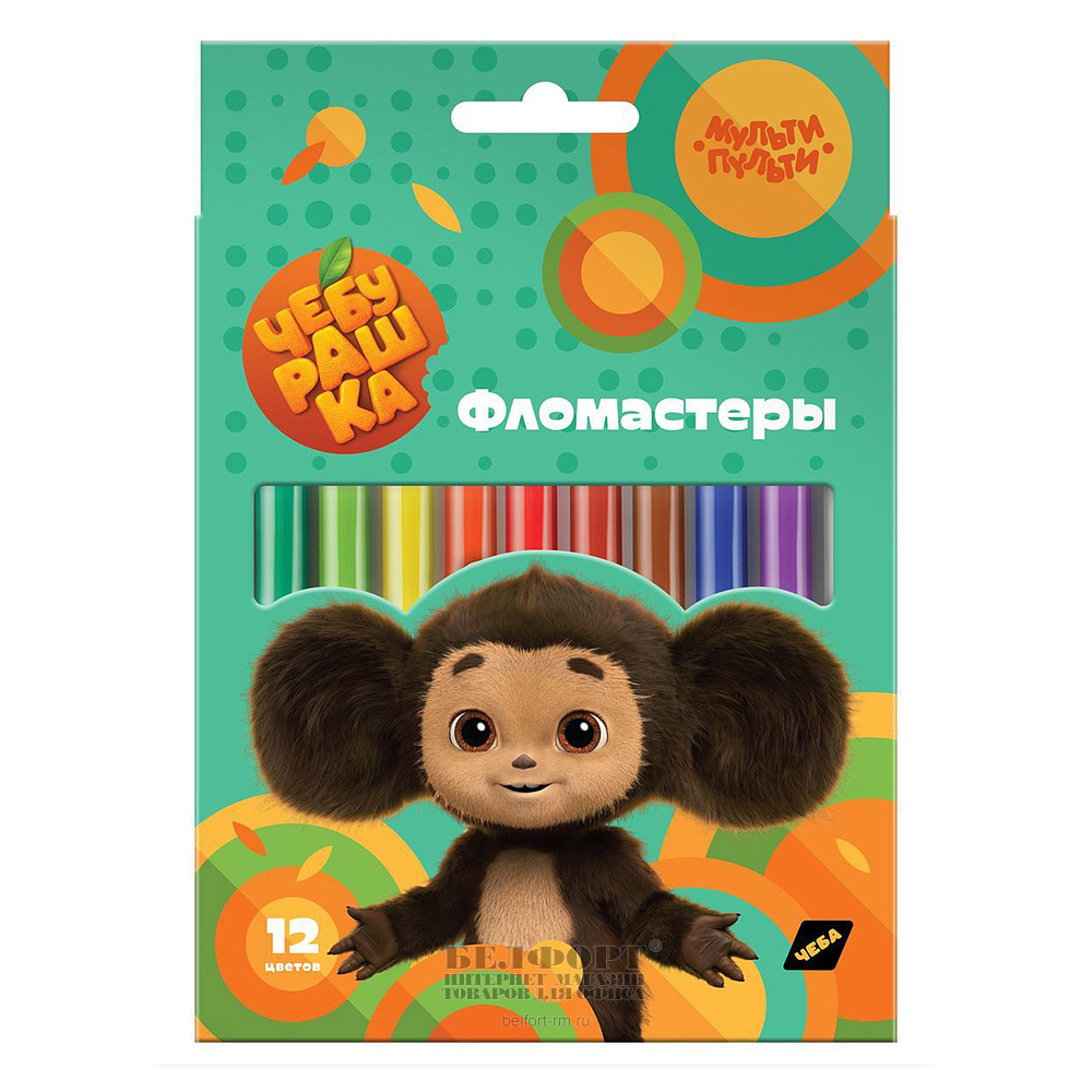 Фломастеры 12цв, Мульти-Пульти, "Чебурашка", смываемые, вентилируемый колпачок, 0,5мм, 1мм, картон. уп.