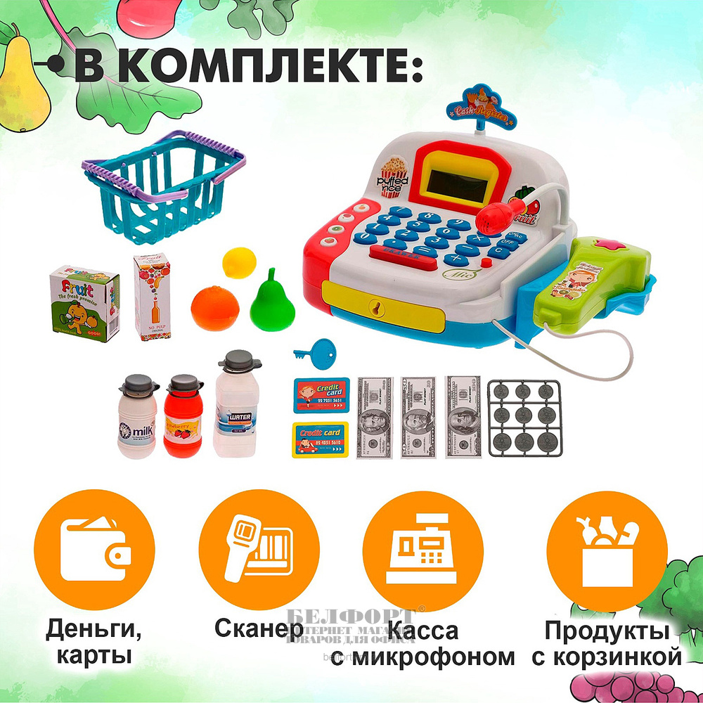 Игровой набор Sima Land, "Касса", с продуктовой корзинкой, 33 предмета