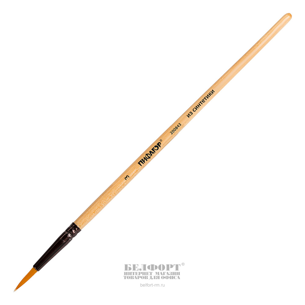 Добавить к сравнению219537Есть в наличии 15 шт.Кисть для рисования белка, N3, Пифагор, круглая