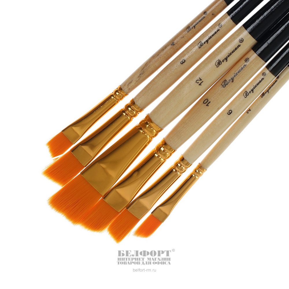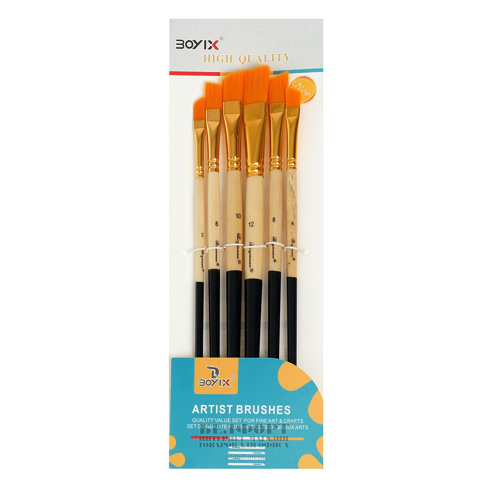 Кисти для рисования в наборе 6шт, нейлон, ассорти, N2,4,6,8,10,12, скошенный