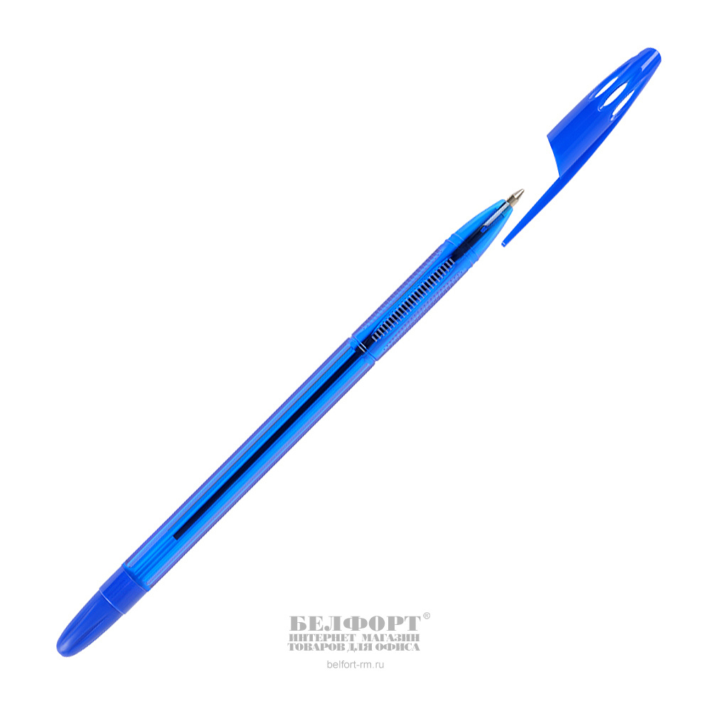 Ручка обычная, шарик., СТАММ, "555", цвет чернил синий, толщина линии 0,5мм, диаметр шарика 0,7 мм, на масляной основе, корпус синий, тонированный, длина стерж