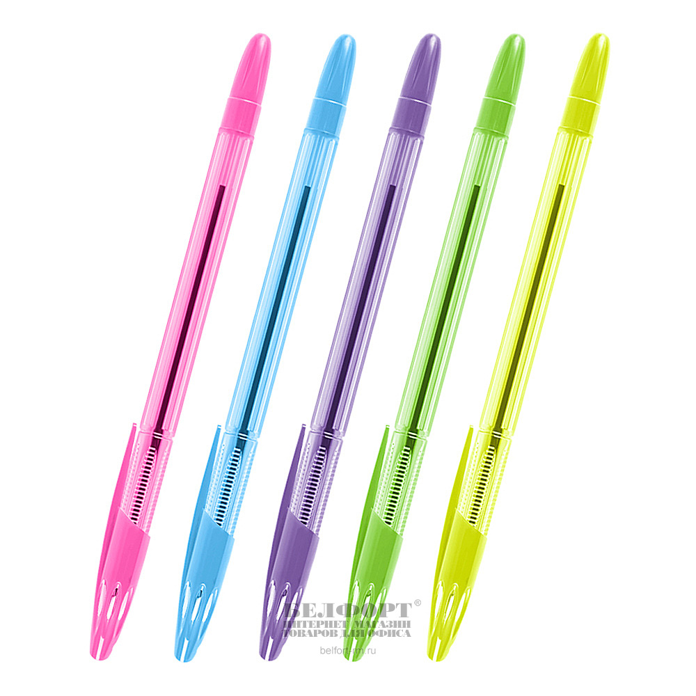 Ручка обычная, шарик., СТАММ, "555", цвет чернил синий, толщина линии 0,5мм, диаметр шарика 0,7 мм, на масляной основе, корпус ассорти, неон, тонированный, длин