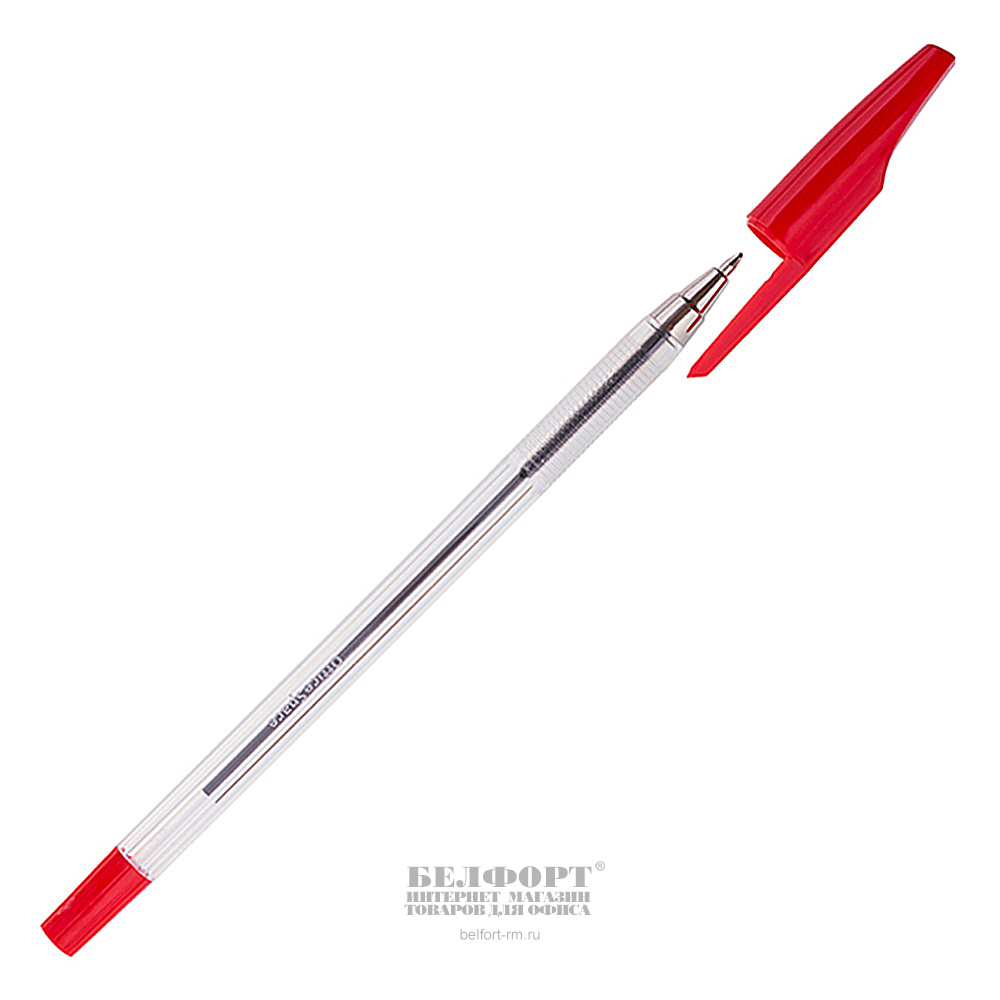 Ручка обычная, шарик., OfficeSpace, цвет чернил красный, толщина линии 0,45мм, диаметр шарика 0,7 мм, корпус прозрачный, длина стержня 143мм, рифленый держат