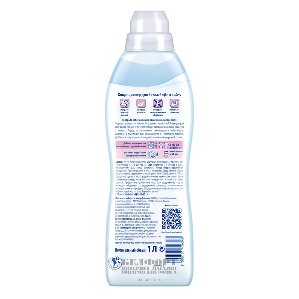 Кондиционер для белья E, "Детский", 1л, концентрат, флакон