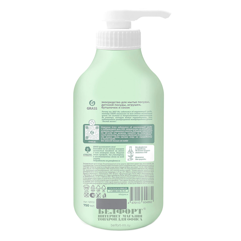 Средство для мытья посуды, игрушек, бутылочек и сосок Grass, "Crispi", 750мл, детское, гель, дозатор