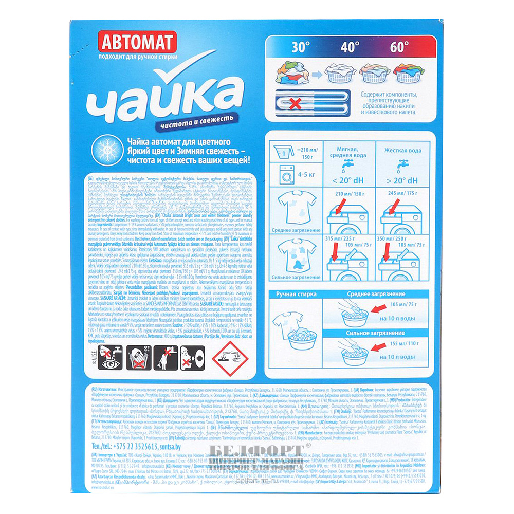 Добавить к сравнению237183Есть в наличии 2 уп.Порошок стиральный Чайка, "Балтийское Море", 15кг, для всех типов стирки
