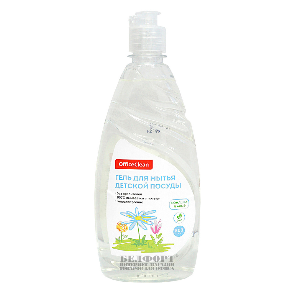 Средство для мытья посуды OfficeClean, "Детский", "Ромашка и алоэ", 500мл, гель, флип-топ