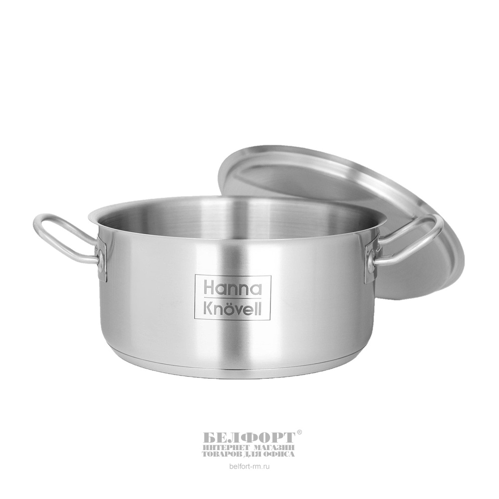 Кастрюля 3л, нержавеющая сталь, без покрытия, Hanna Knvell, d 20 см, h 9,5см с крышкой, для всех типов плит, индукционное дно