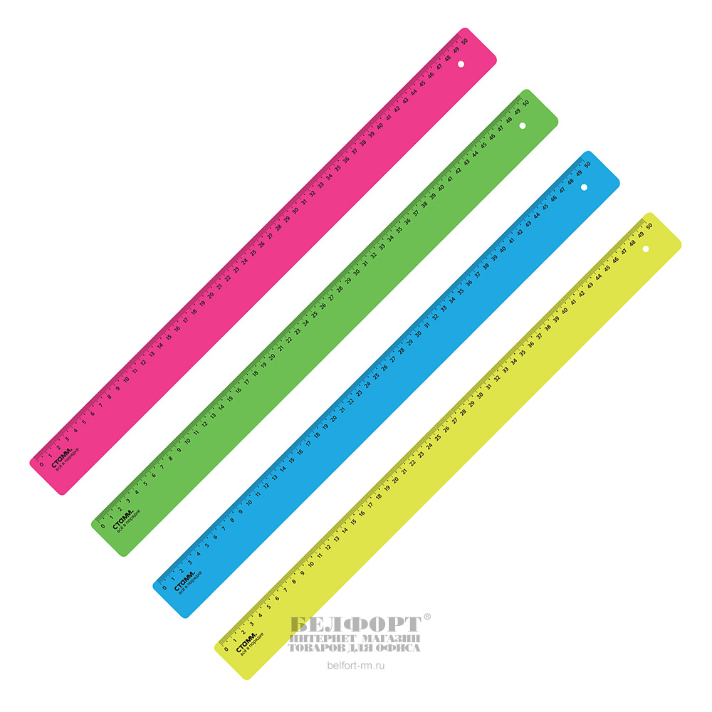 Линейка 50см, пластик, СТАММ, "Neon", ассорти, непрозрачная