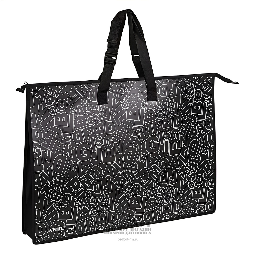 Папка для чертежей и рисунков на молнии, А2, deVENTE, "Words", пластик, с ручками, тесьма, бок 10см