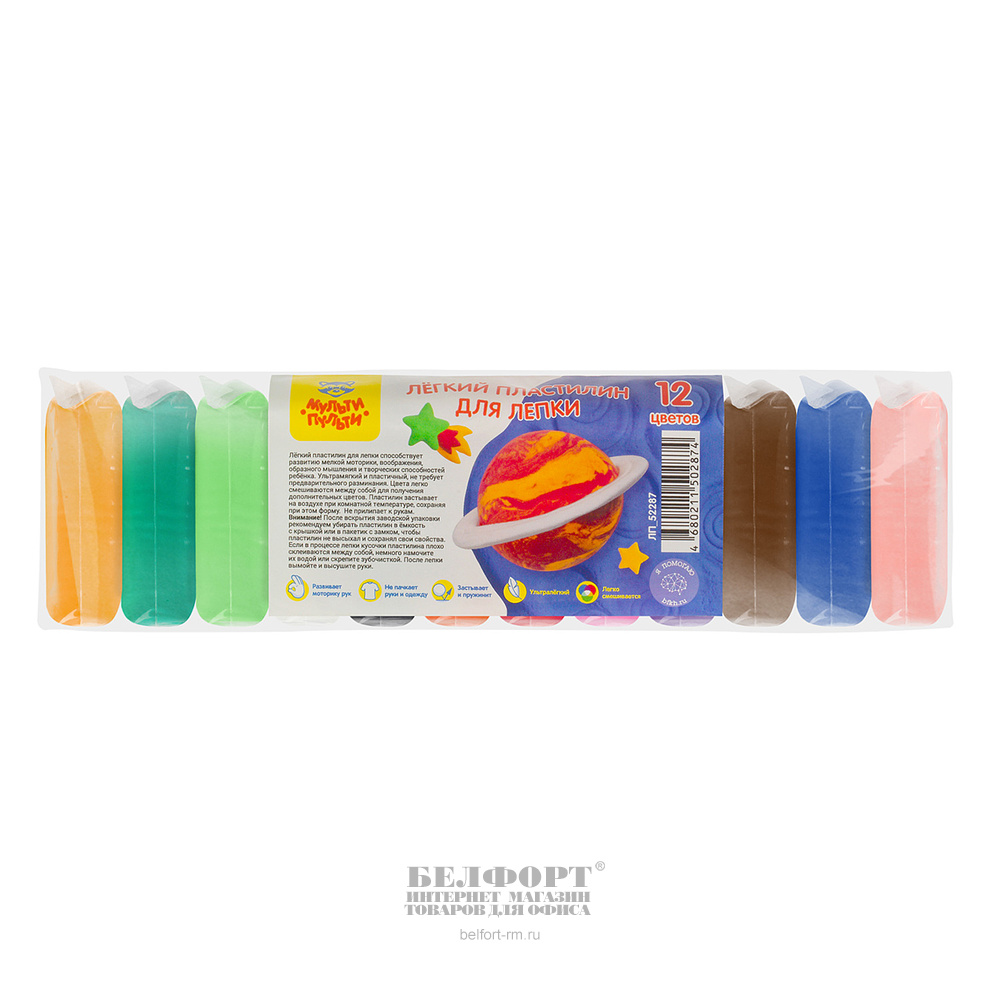 Пластилин легкий 12цв, 120г, Мульти-Пульти, пакет