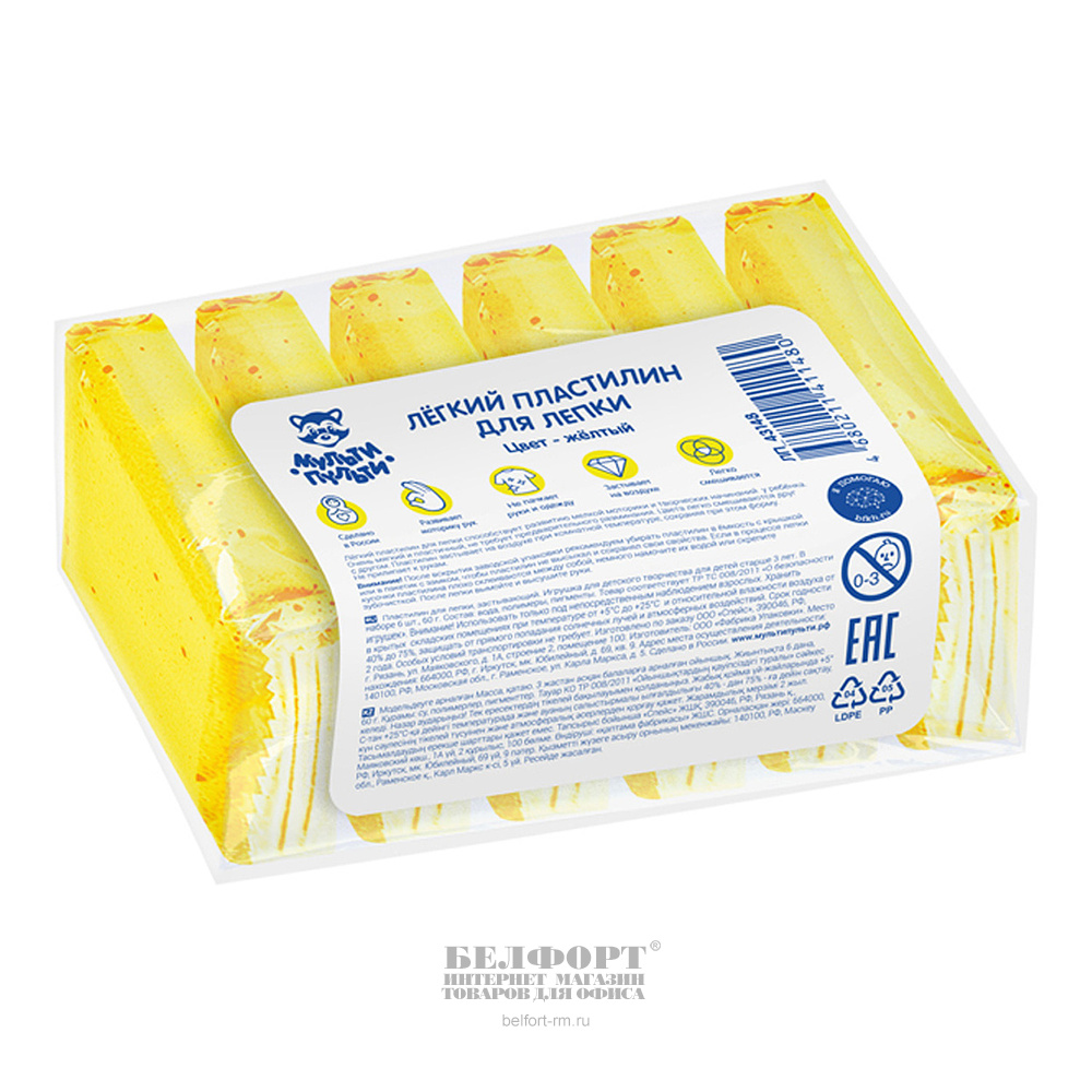 Пластилин легкий 6шт, 60г, Мульти-Пульти, желтый, в пакете